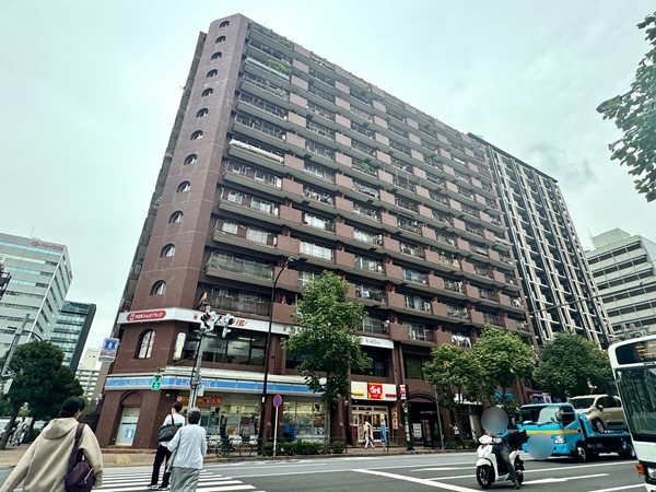 レンガ色のタイルに包まれたどっしりとした佇まいの『グランドパレス田町』。1981年4月築と、築年数は経過していますが安心の新耐震基準適合のマンションです◎鉄筋鉄骨コンクリート造14階建て、総戸数は184戸となっています。
