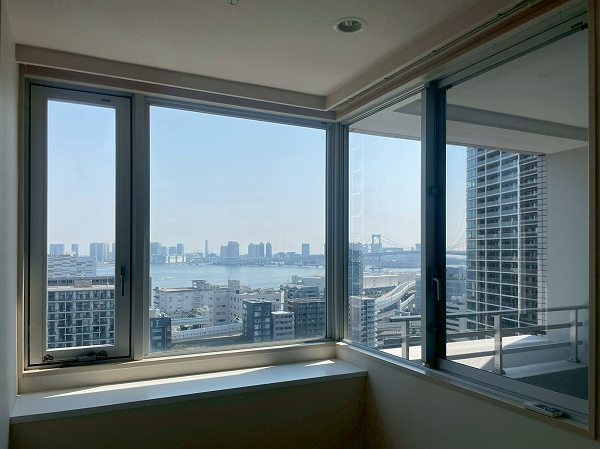 バルコニーから望むのは、東京湾とレインボーブリッジのパノラマ。夜になると橋のライトアップが美しく輝き、夏の花火大会ではお台場の花火が目の前に広がります。自宅にいながら季節の彩りや光のショーを楽しめる、まさに特等席のような空間です♥