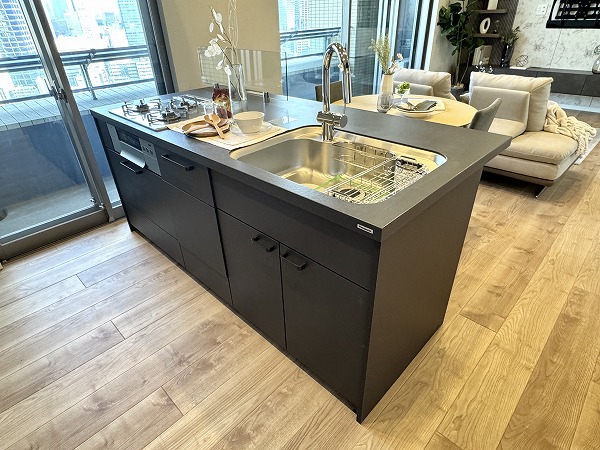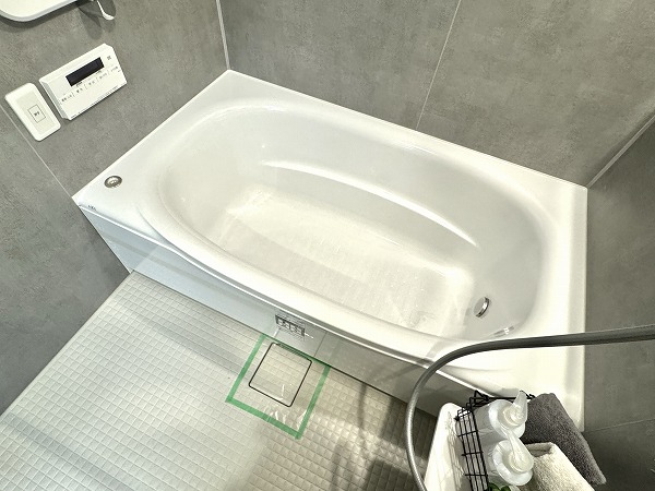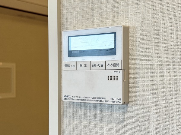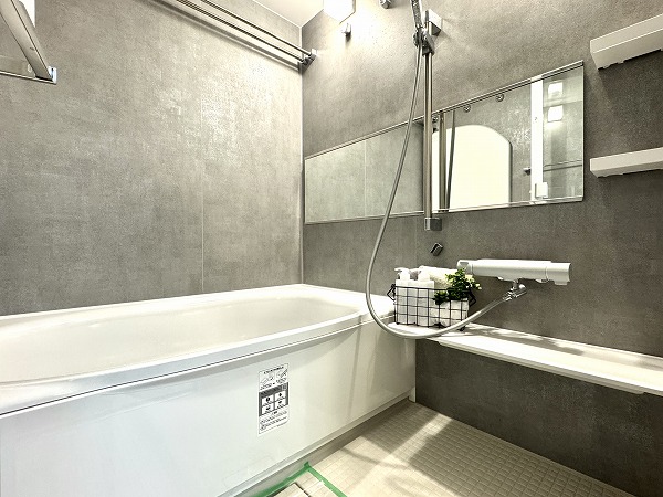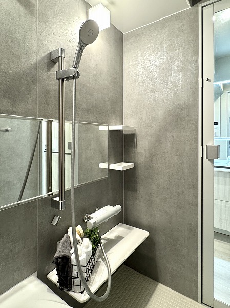 グレー×ブラックでまとめたバスルームは、落ち着きと上質さが漂う癒しの空間。防水モニターを搭載しているため、お気に入りの音楽や映画を楽しみながらリラックスしたバスタイムが過ごせます。追い焚き機能も完備されているので、ゆっくり温まりたい日にはワンタッチで好みの湯温をキープ◎