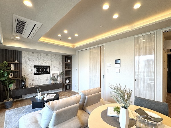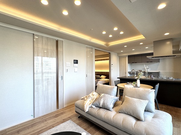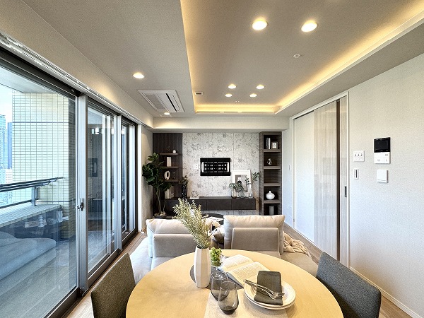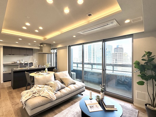 メインルームは約20.2帖もの広さを誇り、都市型レジデンスらしいダイナミックな開放感に満ちた空間。リビングゾーンとダイニングゾーンが美しく整理できる構造で、インテリアのレイアウト幅が広がります。角部屋のため窓が多く、都会の光が滑らかに差し込む明るさも魅力。床暖房を備えたフロアは冬場でも快適で、1年を通してラグジュアリーな時間を提供してくれますよ。