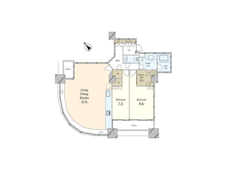 専有面積103㎡超えの広々としたお部屋をご紹介します♪間取りは使い勝手のいい2LDKで、シューズボックスにウォークインクローゼットなど、収納スペースもしっかりと確保されていて、空間を有効活用できちゃいますよ✦