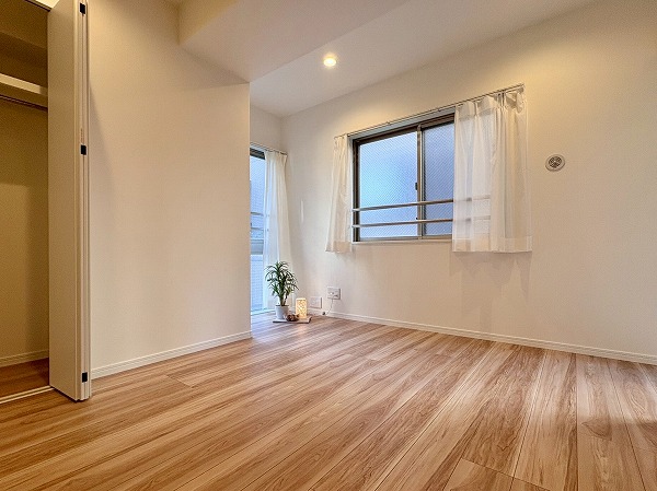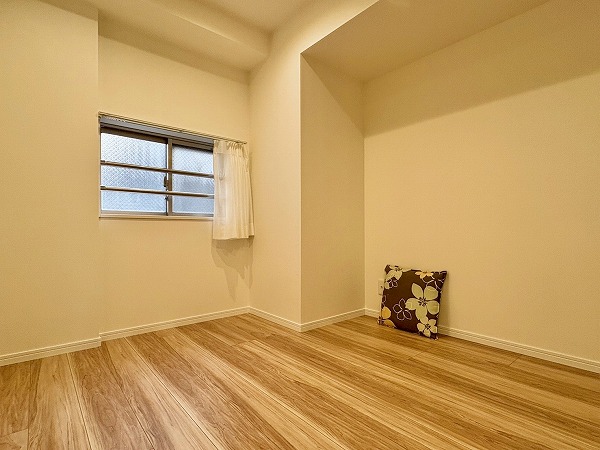 最奥部にあるのは約5.7帖の洋室です。北西・北東・南東向きに窓がついているため、採光が一番優れているお部屋です!北西向きの窓際に興味深いスペースがあり、ここに観葉植物やインテリアを配置するか、読書用の椅子を配置するか...など、どう生かすかは皆さん次第...!