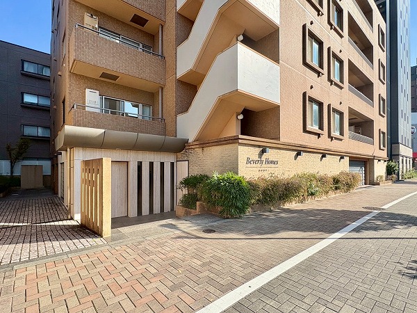 神泉駅から徒歩9分。閑静な松濤の住宅地を進むと、『ビバリーホームズ松濤』が現れます。2001年7月に竣工された、地上13階建ての鉄骨鉄筋コンクリート造のマンションです。L字型の外観とオレンジ色の外観がチャーミング!