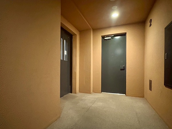 共用廊下は内廊下になっており、荒れたお天気の日でも外に出たとたんに雨風に当たってしまう心配がありません!カーペットが敷かれた廊下は、まるでホテルのような雰囲気で、とても心地よい空間です。足音や生活音をやわらげるだけでなく、クッション性があるため、もしもの転倒時にもケガをしにくいのが嬉しいポイントですね!