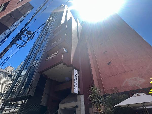 渋谷駅から徒歩6分。賑わいの中心地から少し距離を置いた宇田川町の住宅街に佇む『ノア渋谷パート2』。ブラウンを基調とした明るい外観が印象的で、街並みに自然と溶け込む存在です。階段を上った先にあるエントランスは、都心らしい人の流れを感じつつも、管理人室や防犯カメラがきちんと配され、落ち着いた空気感を保っています。