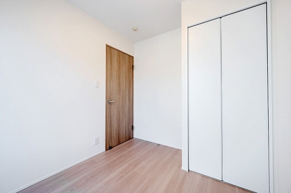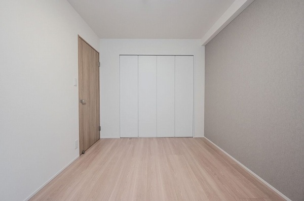 洋室は約6.0帖と約3.8帖の2部屋。約6.0帖の洋室は廊下側に独立し、落ち着いた主寝室にぴったりです。グレーのアクセントウォールが空間にさりげない表情を添え、クローゼットも備えて収納面も安心。メリハリのあるプライベート空間が整っていますね。