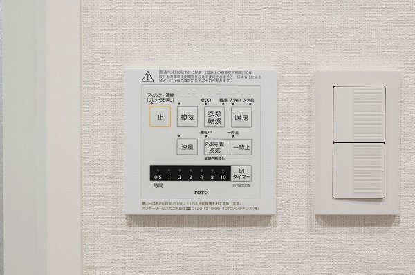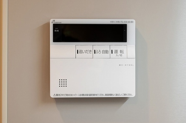 木目調の鏡面パネルが空間に温かみを添えるバスルーム。追い焚き機能付きでライフスタイルに合わせた入浴が可能です。浴室乾燥機も設置されており、日々の家事をしっかりサポートしてくれますよ。