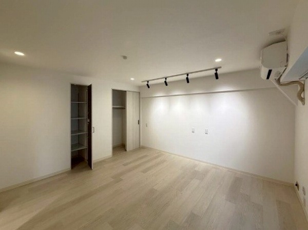 洋室はライティングレールを備え、照明演出を楽しめる空間。スポットライトやペンダントを取り入れることで、寝室としても心地よく表情のある雰囲気を演出できます♥室内にはクローゼットを完備し、衣類や身の回りのものをすっきり収納。さらに廊下にもクローゼットが設けられ、季節物や生活用品の収納にも便利!