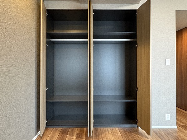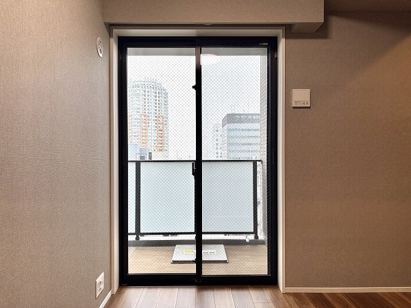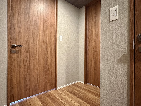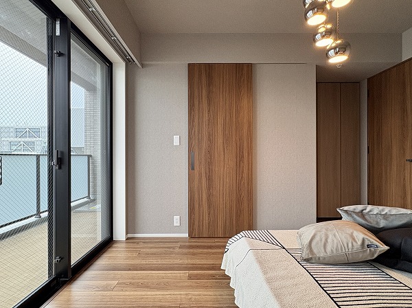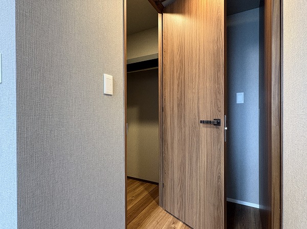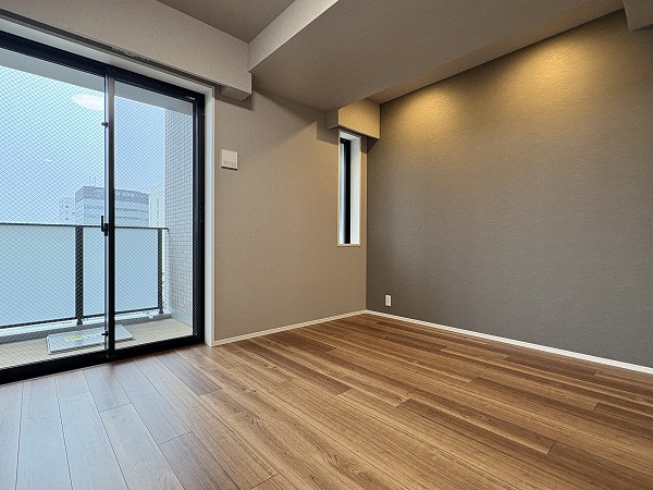 こちらは約8帖の洋室です。2つの洋室はメインルームとは反対側にあります。くつろぐためのリビングと、ワークスペースや寝室としての洋室が分かれており、気持ちの切り替えがしやすいです。窓は北西向きなので、光の具合は仕事や趣味に集中するのに最適✧