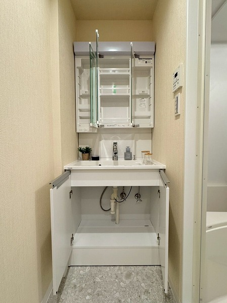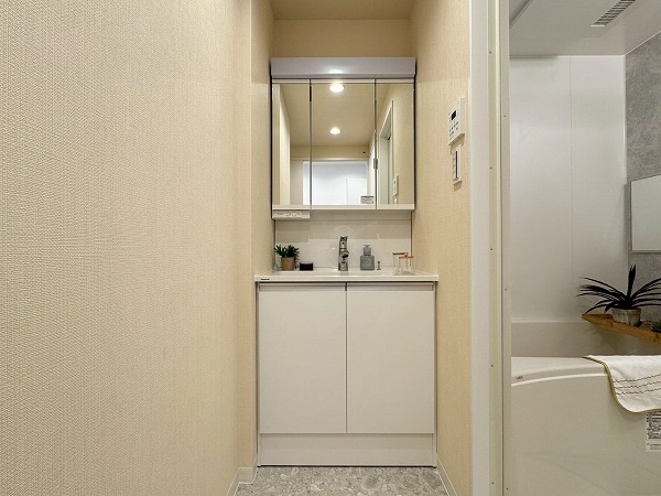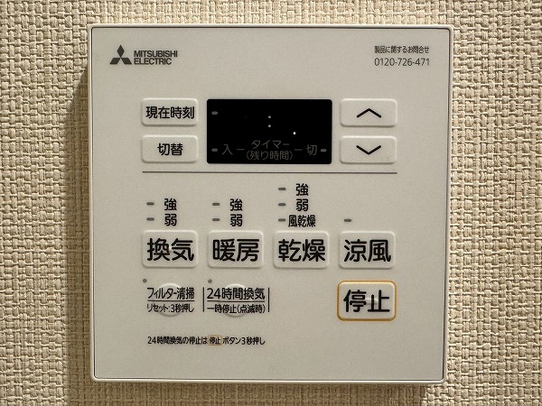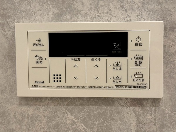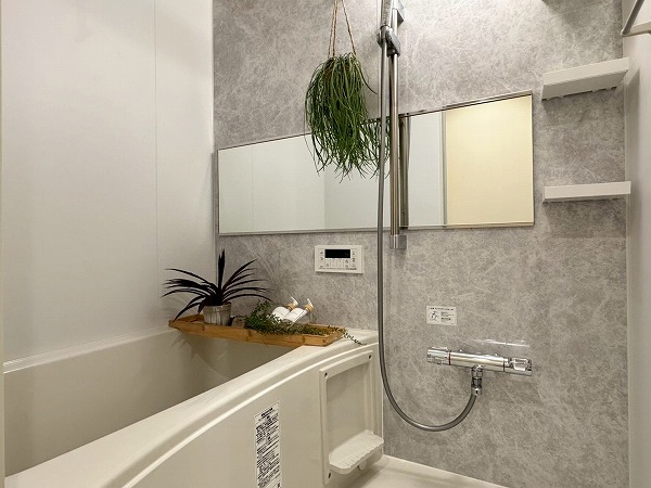 上品なグレーパネルを採用したバスルームには追い焚き機能と浴室乾燥機を完備。シャワーヘッドも大きめで、体を素早く温めることが可能♡雨の日や花粉の季節でも問題なく洗濯物を干せる点も嬉しいですね。
