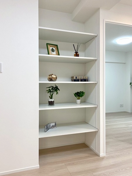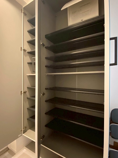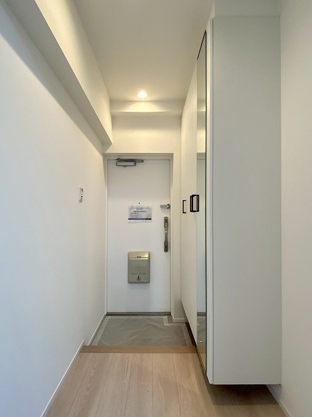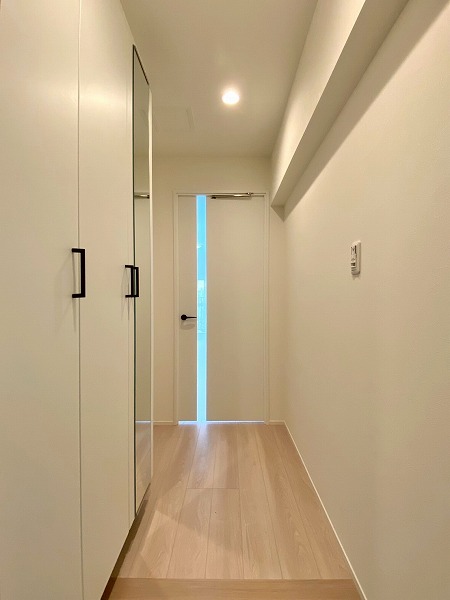 ナチュラルな木目とホワイトトーンでまとめられた玄関は、清潔感と温かみを兼ね備えた空間。姿見付きの大容量シューズクローゼットが完備されており、お出かけ前の最終チェックもバッチリ◎玄関周りがいつでも整った印象に保てます。