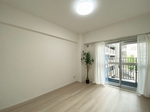 約5.0帖の洋室には大きな窓があり、朝の光がたっぷりと差し込みます。ベッドを置いても余裕のある広さで、ゆったりとくつろげる寝室空間に。もちろん、クローゼットも備えており収納力も抜群!衣類や荷物をすっきりと収められます。