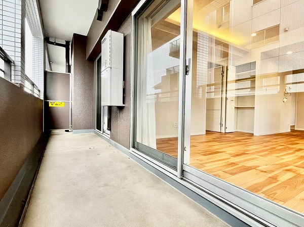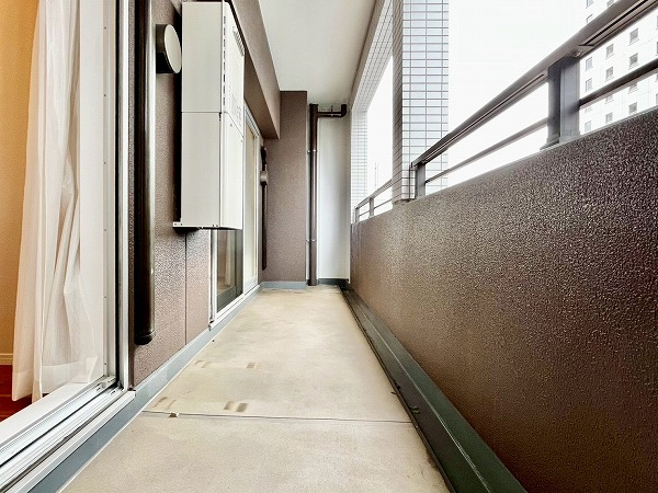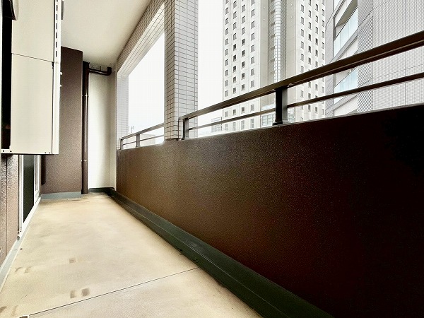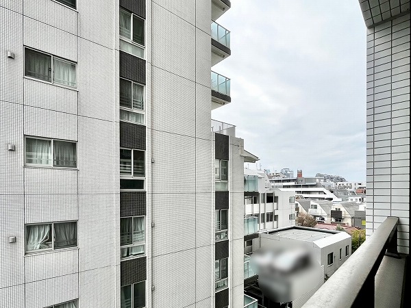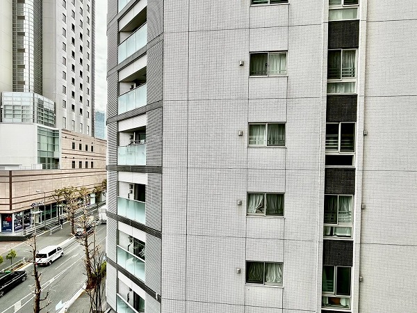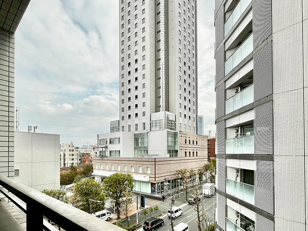 南向きバルコニーの先にはビルが、眼下には大通りが走り、賑やかな都会での暮らしを体感できます。