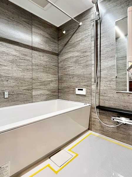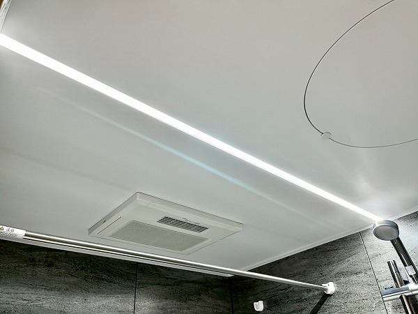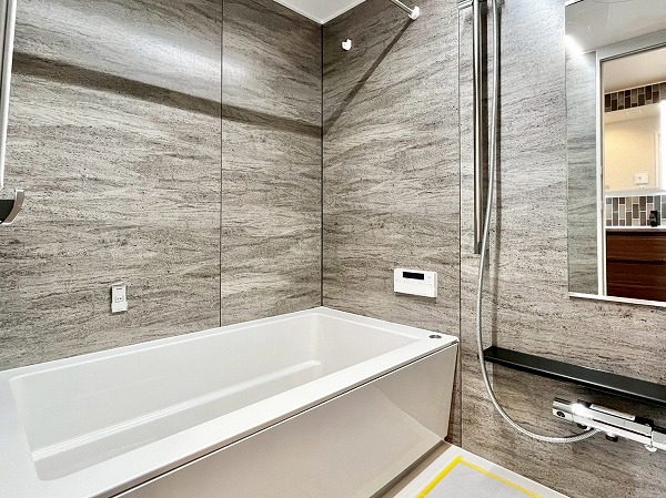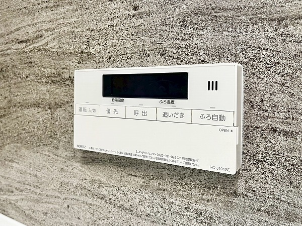 浴室乾燥機能を備えたくつろぎのバスルーム。こちらは壁についたスイッチで、照明の寒色・暖色を切り替えることができるちょっと珍しい仕様です。趣味で長風呂される方は、さらに特別なバスタイムになるかもしれませんね。追い焚き機能もついているので、お湯がぬるくなってしまっても、適温に温めなおしてリラックスタイムを楽しめます✧
