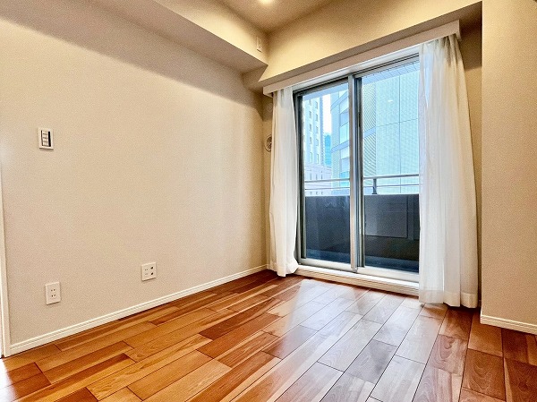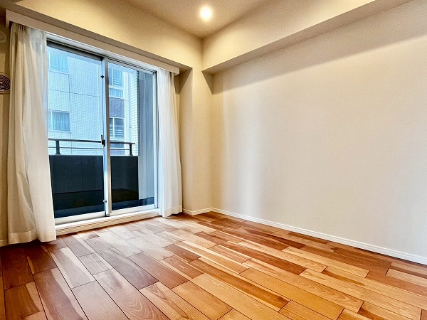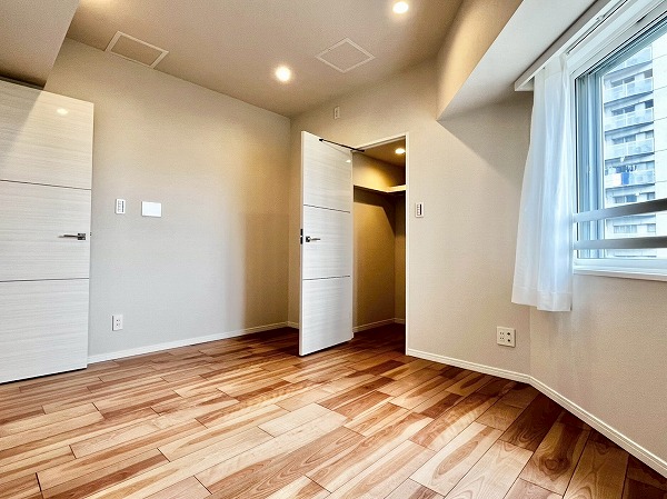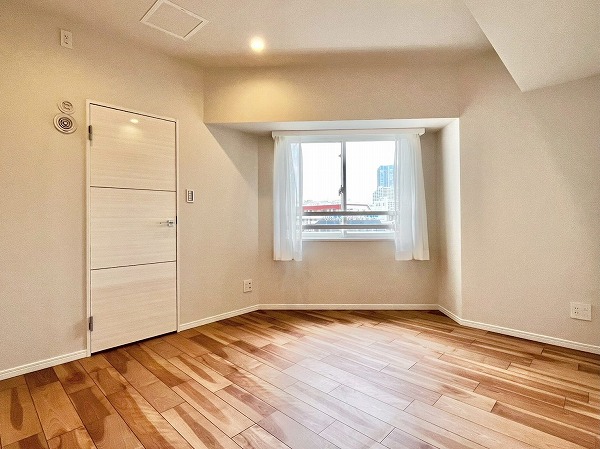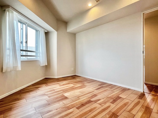 およそ7.1帖の洋室はクローゼットが付いて、ベッドルームとしても最適。少し特徴的な形をしているので、逆に個性的なインテリアとの相性がいいかもしれません。カラーやデザインが面白いソファやサイドテーブルで遊びを加えて、自分向けの居心地がいいお部屋を作ってみてはいかがでしょうか。