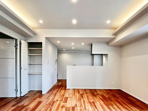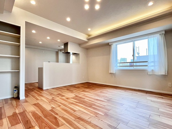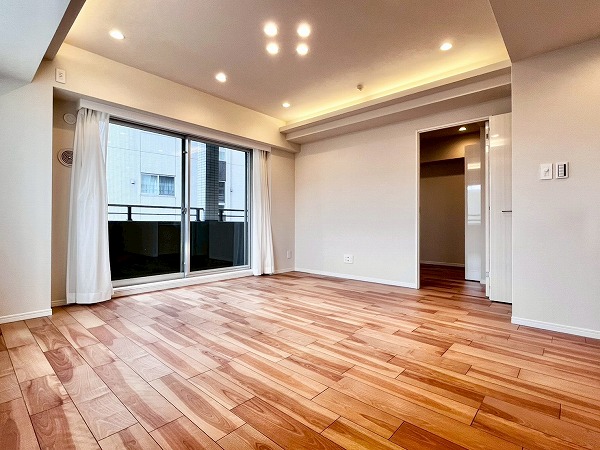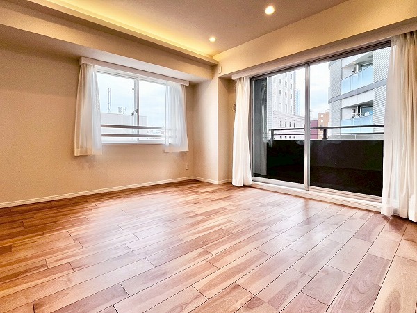 4階に位置する2LDK+WIC+SICの角部屋。うれしいペット飼育可能物件です!メインルームの窓は西側と南側の2面にわたって設けられており、陽当たり良好。換気もしやすい造りが嬉しいですね◎お部屋のどこにいても窓から外を感じることができ、圧迫感がありません。天井にはふんだんに照明が用いられ、夜もリラックススペースを柔らかく照らしてくれます。