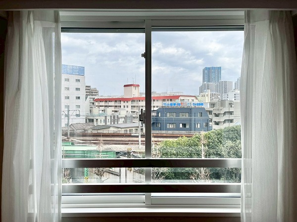 外を走る線路に面した窓には全て二重サッシが取り入れてあり、騒音対策もばっちりです。