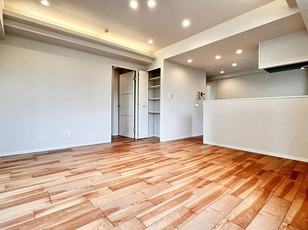 4階までエレベーターで上がり、訪れたお部屋は、専有面積64.64㎡を誇る2LDK。