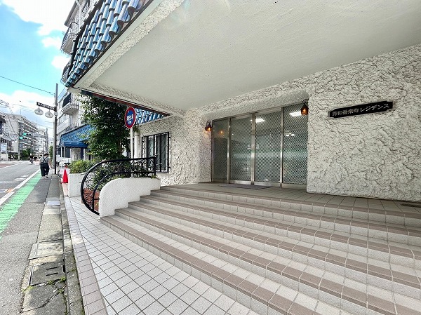 通り沿いで際存在感を放つこちらのマンションが、『秀和番衆町レジデンス』。地下1階付地上10階建て、総戸数109戸のビッグコミュニティです。スタッコ調の白い外壁や青い瓦屋根といった、「秀和シリーズ」お馴染みのカラーリングが特徴。昭和築のマンションですが、過去に大規模修繕工事が行われており、綺麗な状態が保たれています。敷地内には駐車場・バイク置場・駐輪場を完備。