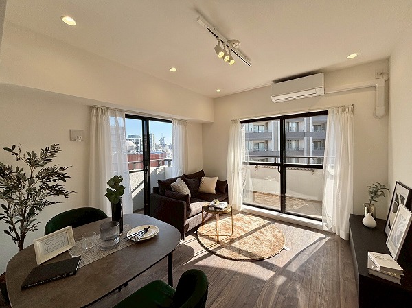 今回は上層階10階部分に位置する2LDKをご紹介しました!1フロア2戸のみなので、プライベート性が高いという特徴が。シンプルなナチュラルテイスト仕様にリニューアルされています。窓のフレームにブラックが使用され、空間の印象をグッと引き締めモダンな雰囲気に仕上げています。撮影したのは真冬の寒い日でしたが、陽当たりが良いので室内はとても暖かかったです。立地や陽当たり、周辺の環境音などぜひ現地でご確認ください♩ ライター:mii【26A30】