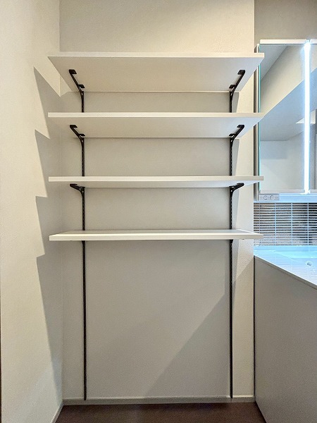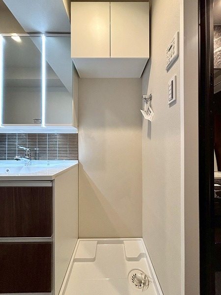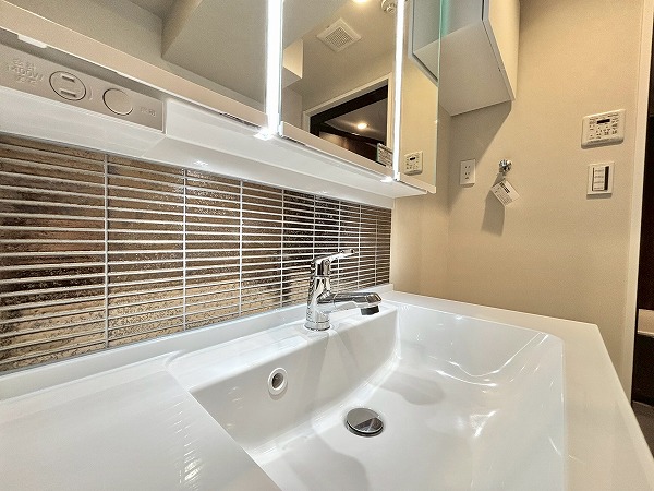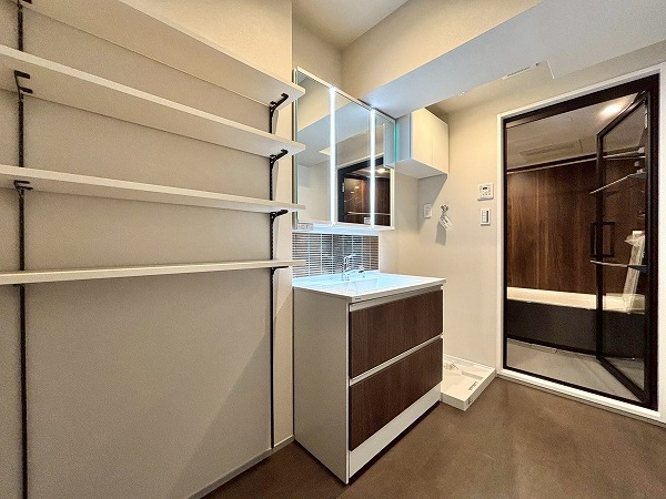 サニタリールームは水回りを1か所に集めた設計。洗面化粧台の隣にリネン庫はリネン庫を備えており、タオルや日用品を手の届く場所に収納でき、見た目もすっきりとした印象を保てます。