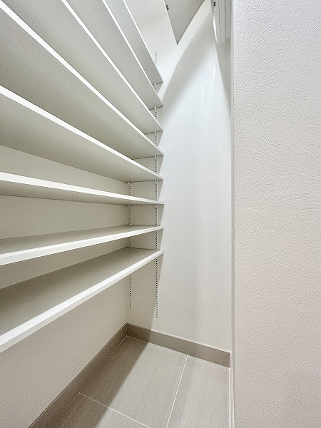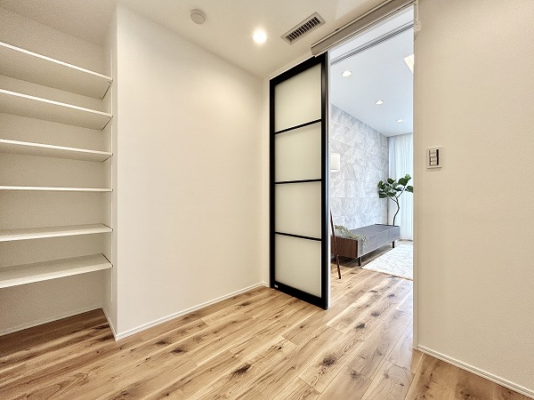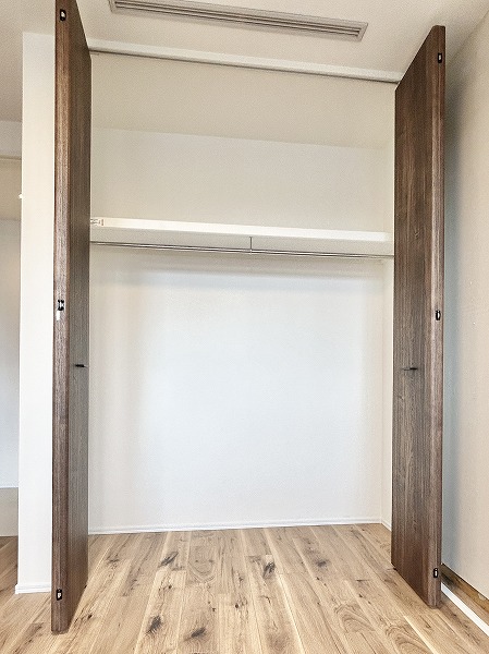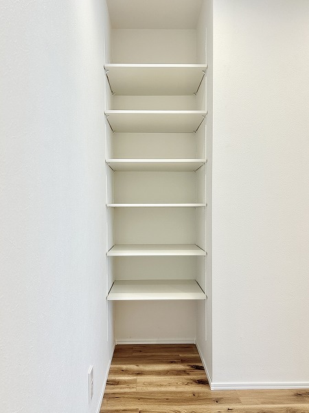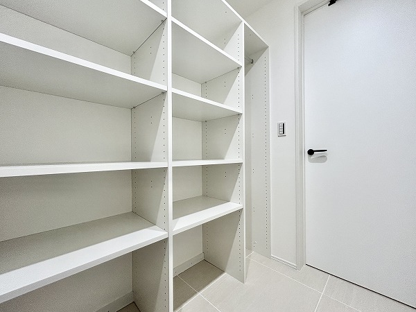 今回の3SLDKの魅力の1つは、収納が豊富なこと。玄関廊下にはこちらの納戸が備わっています。日用品やペット用品のストックや、掃除機やフローリングワイパーなどのお掃除用品の保管場所にピッタリ。他にもウォークインクローゼットやクローゼットなどもご用意しています。荷物をたくさんしまって、生活感のないオシャレなお部屋をキープしましょう♩