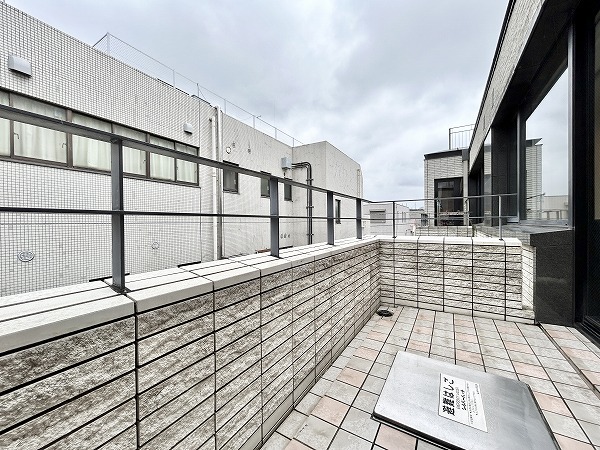オートロックの先には…白を基調としたラウンジスペースが。高級感のあるソファが置かれていて、ご友人との待ち合わせやご歓談にピッタリなスペースです。地下にはトランクルームも設けられていました。日常的には使わないレジャー用品などの保管に便利ですよね。敷地内には駐車場や駐輪場なども備わっています。