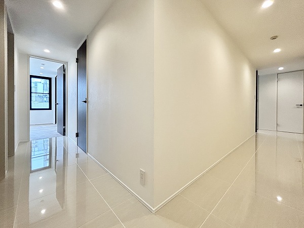 エレベーターを使って居住フロアへ向かいましょう。絨毯が敷かれた内廊下は、まるで高級なホテルのよう。クラシック音楽が流れていて、優雅な気持ちになりました。窓がないためマンションの外からの視線が気にならず、プライバシーが守られます。