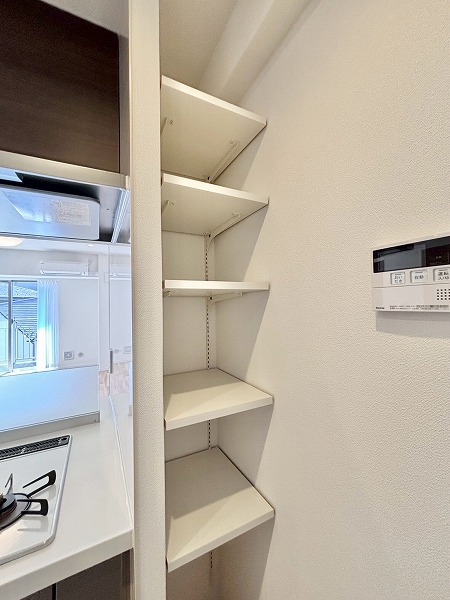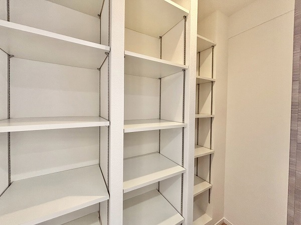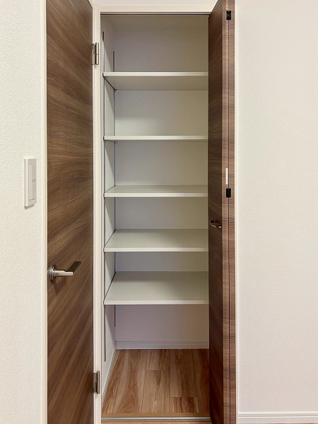 キッチン横の引き戸を開けると…こちらのマルチウォークインクローゼットがありました。パントリーとして使用するのも良いですし、日用品やペット用品を使用する物置代わりにしても良いですね◎たくさん物をしまって、お部屋を広く使いましょう。