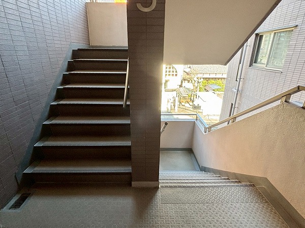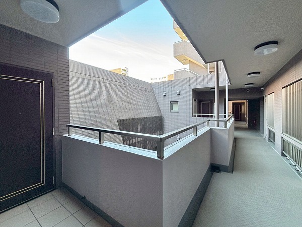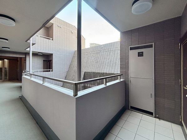 居住フロアは外廊下仕様。吹き抜けになっていて、どのフロアからでも太陽の光を感じることができました♩しっかりと清掃されており、管理体制の良さが伺えますね。