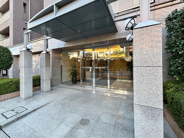 曙橋駅から歩くこと7分。細い路地に面した『ビラカーサ四谷四丁目』に到着。高級感のある内装としっかりとしたセキュリティ性が魅力的なマンションです。管理人さんは週6で勤務されているようなので、困ったことがあれば気軽に相談できますね。
