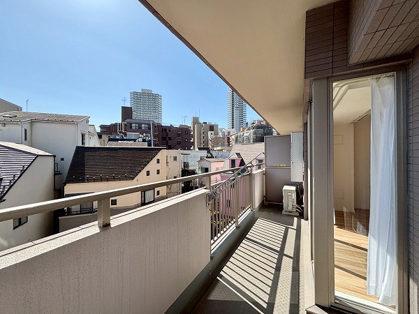 南東向きのバルコニーは9.32㎡。横に長い造りになっているので、お布団やシーツなどの大きな洗濯物も干しやすそうでした。前面に高い建物がないので、明るい南側の光がしっかりと感じられます。椅子を置いて、のんびりリラックスしたくなりました。