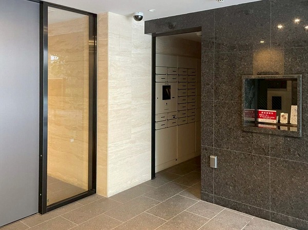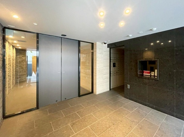 外の光をほどよく取り込むガラス仕様のエントランス。閉鎖的になりすぎず、明るさを感じながらも、オートロックによってプライバシーと安全性が守られている印象です。