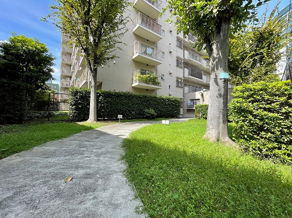 通りに面したマンションですが、アプローチが奥まった造りになっておりマンション内のプライベート性を高めています。駐車場はマンション内の中庭部分に。屋根がないのは気になりますが、帰ってきてすぐにお車を止めることができる快適さは魅力的と言えますよ♪