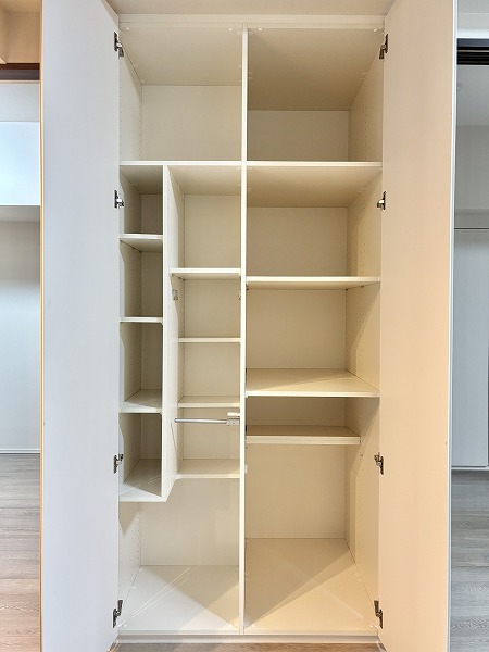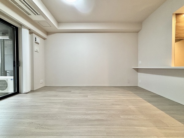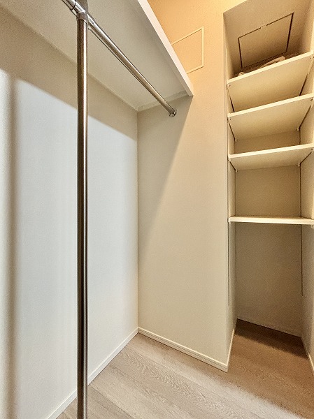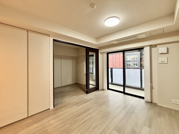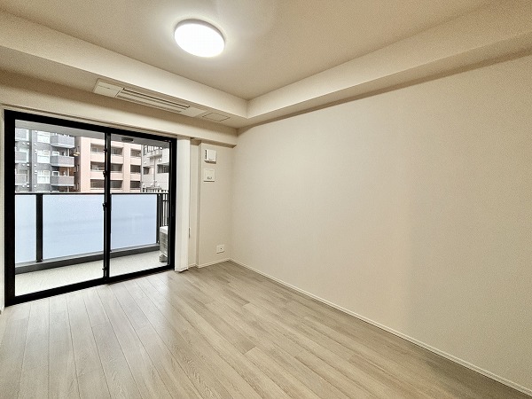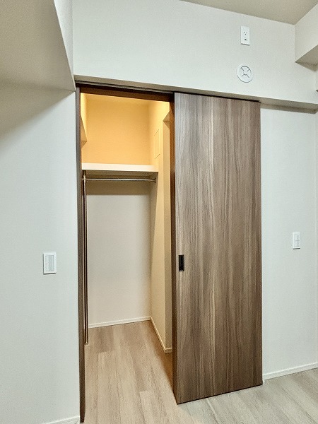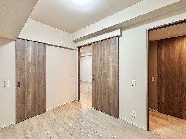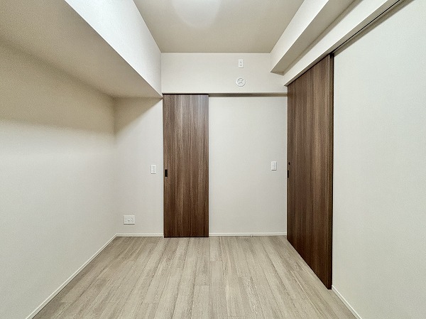 およそ6.0帖の洋室には窓がありません。その分、日差しの影響を受けずどの時間帯でもぐっすり眠れるというメリットが♬また、メインルームと廊下の両方にドアがある2重動線になっているのもポイントです。荷物は大きなウォークインクローゼットへどうぞ。