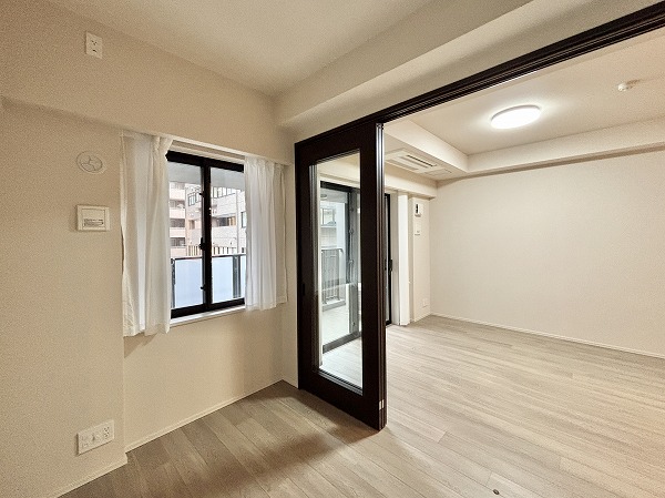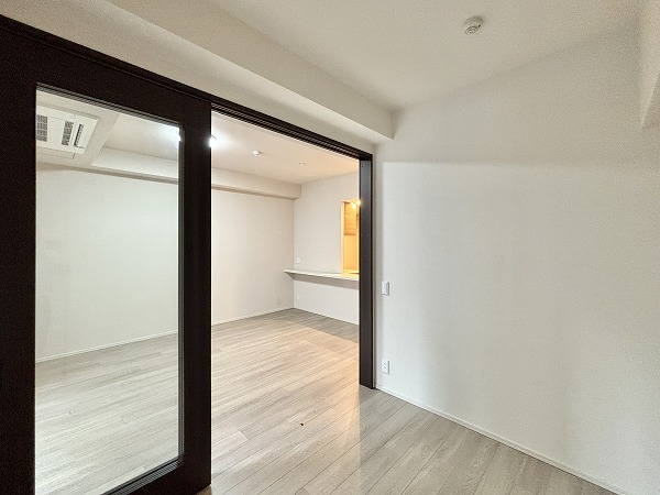 2つ目の洋室はおよそ4.0帖と少し小さめですが、メインルームとの間の間仕切りがクリアなパネルになっているので実際よりも広く感じました◎壁一面にクローゼットが設けられているのも特徴です。