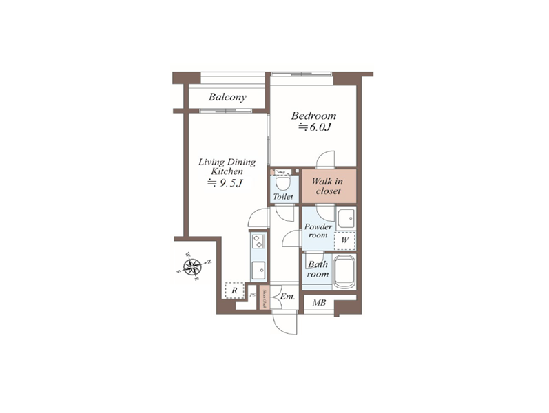 北西向きのバルコニーは3.38㎡とコンパクト。干しきれないお洋服はバスルームの浴室換気乾燥機を使って部屋干しするのがオススメです。向かいのビルに面していますが、距離が少しあるので閉塞感はありません♩あちらがカーテンを閉じてくれているので、室内のプライバシーは守られるはず。