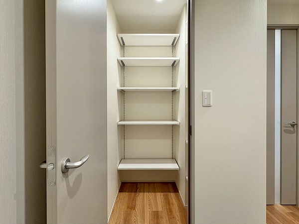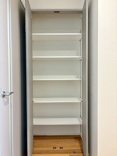 収納力抜群のシューズインクローゼット付き。床が玄関と分かれているため、清潔に保てるのが魅力です。靴だけでなく、雨具や小物の整理にも便利。身支度の時間がスマートになります。