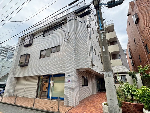 明治通りから少し奥まった場所に建つ『大久保杉ハイム』。白を基調としたタイル貼りの外観が爽やかな印象を与えます。全24戸の中規模マンションで、落ち着いた住環境が魅力。波を打つようなバルコニーラインが建物に柔らかなリズムを生み、個性を感じさせます。