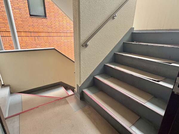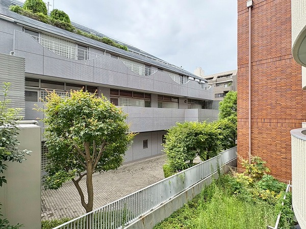 エントランスへ続くアプローチは、美しいタイル貼り。道路からエントランスまでの距離がしっかり取られており、奥まった造りがプライバシーを守ってくれます。外の喧騒を忘れ、落ち着いて建物へと入っていける心地よいアプローチでした。