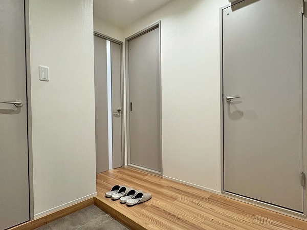 玄関に一歩入ると、想像以上の広さに驚きます。ベビーカーやスーツケースも余裕で置けるゆとりあるスペース。お出かけ前の支度もスムーズに。壁面に季節のリースやアートを飾れば、自分らしい“お迎え空間”の完成です♡