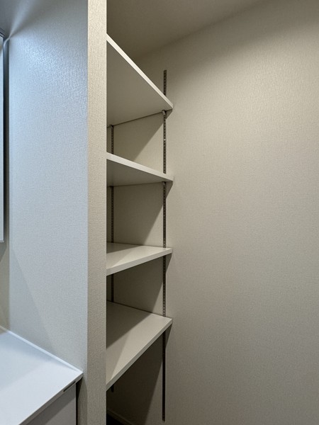 約4.5帖のサービスルームは、まるで小さなギャラリーのような空間。壁一面に設けられたウォールシェルフが、ただの収納ではなく“飾る”楽しさを引き出してくれます。実用性とデザイン性が美しく両立した、魅せる収納を思う存分楽しめる一室に仕上がっていますよ✿