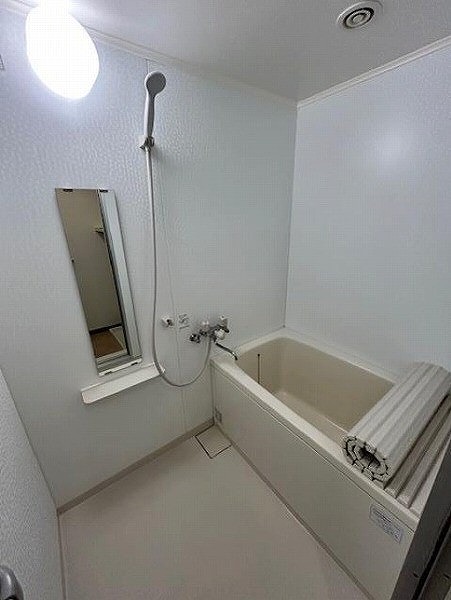 バスルームは、やわらかな色調で統一された落ち着きある空間。ゆったりとした湯船が据えられ、肩まで浸かればその日の疲れがすっと溶けていくような心地よさがあります。壁面にはアクセントを加えられる余白があり、バスラックを取り入れてお気に入りのバスオイルを並べたり、間接照明風のLEDライトを配置してホテルライクな雰囲気に整えるのもおすすめですよ♩
