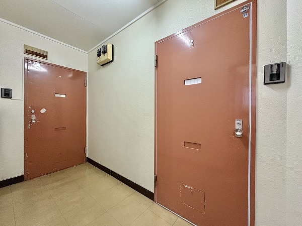 エレベーターは1基で、赤色のアクセントが空間のポイントに。住戸数が少ないため、利用時もスムーズで待ち時間のストレスが少ないのも嬉しいポイントです。