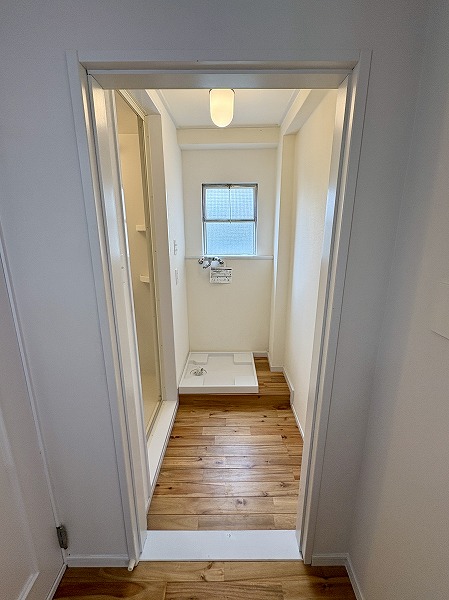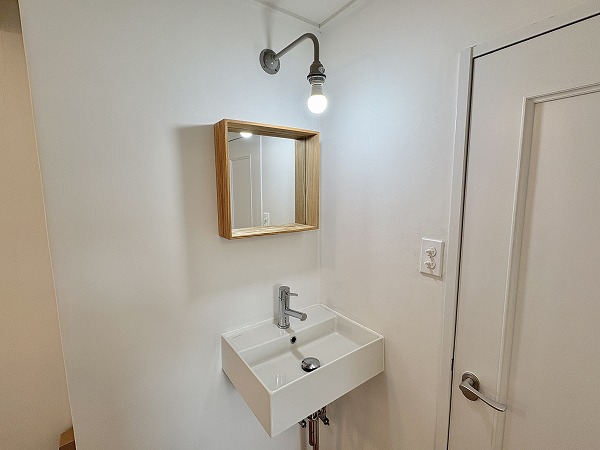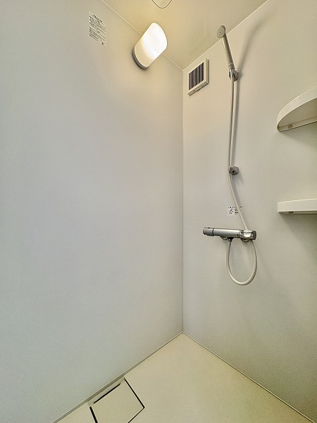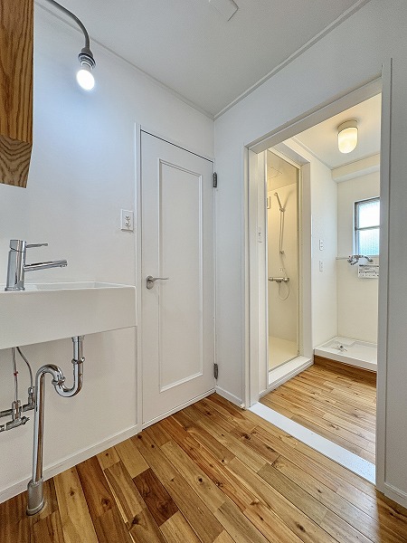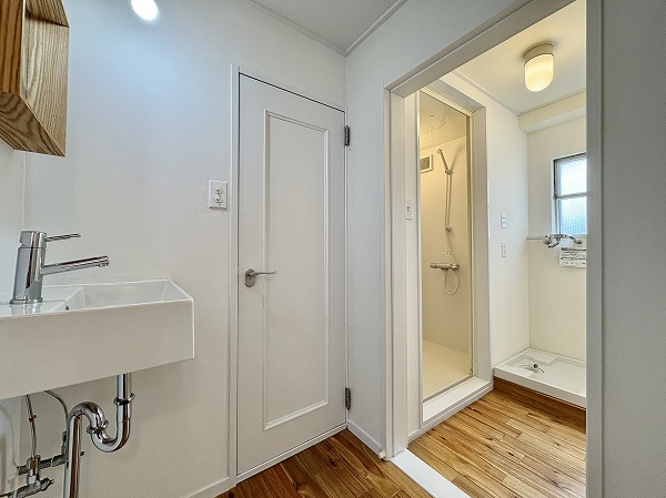 清潔感溢れるサニタリースペースは、シンプルながら機能的。洗面台はコンパクトで無駄のないデザイン、浴室はシャワールームタイプなので日常使いも掃除もラクラク。効率的な水回り空間です。