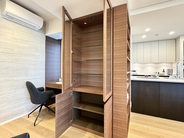 『パークレ・ジェイド白金レジデンス』の3階にあるお部屋をご紹介しました。一番の見どころは何と言ってもおよそ34.4帖の広大なメインルーム。大きな窓があるおかげでより空間に奥行きが感じられ、実際のスペースよりも更に広々とした印象でした。北向きなので比較的直射日光の影響を受けることがなく、家具や床が日焼けしてしまう可能性は低そうですね。メインルームに入ってすぐ左側には、作り付けのカウンターデスクがあり、ワークスペースとしてはもちろん、ディスプレイスペースにも最適◎収納スペースが豊富に完備され、見せる収納と隠す収納がバランスよく取り入れられているため日用品を仕舞う場所に困ることは無さそうです。ゆったりとしたコの字型のキッチンもオススメしたいポイント。対面側はフラットタイプのカウンターとなっており、椅子を付ければその場でお食事をお楽しみいただくことも出来ますね。優雅な暮らしが叶うお部屋です。ぜひ一度内見してみてください。 ライター:kayo【25K14】