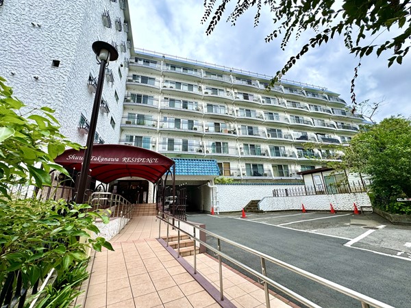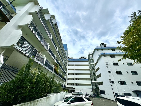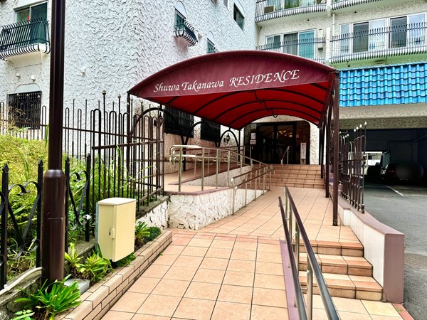 小高い丘の先に待つ『秀和高輪レジデンス』。南欧風の青い瓦屋根・白塗りの壁・黒い鉄製柵がチャームポイントの秀和シリーズ。日本を代表するヴィンテージマンションの1つです。長いアプローチが、まるでお城へ向かうかのような特別な気持ちにさせてくれます。