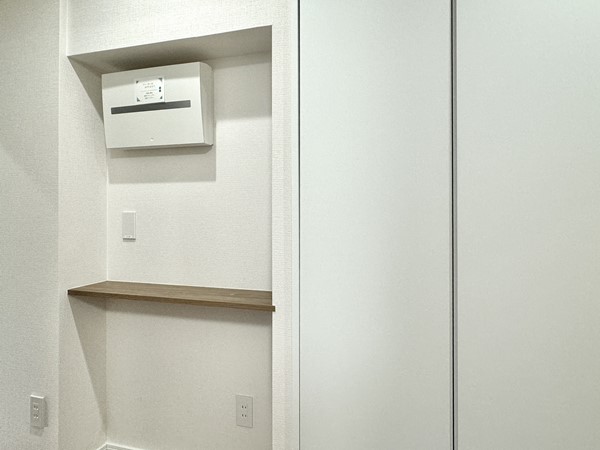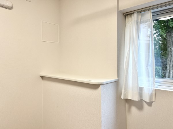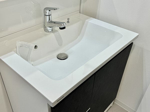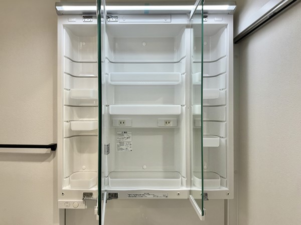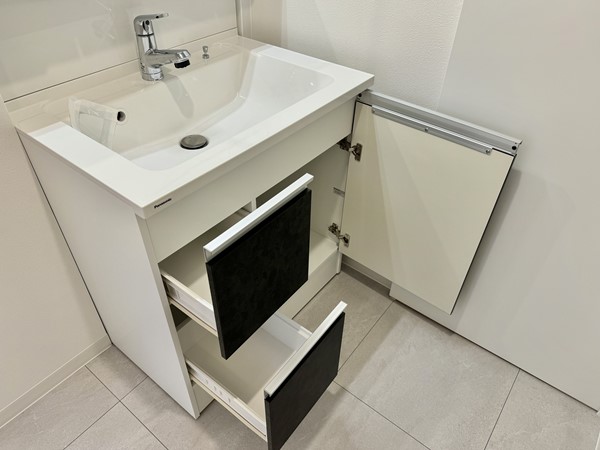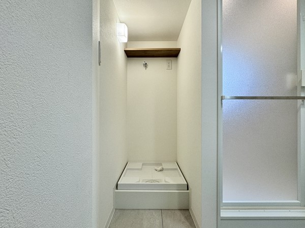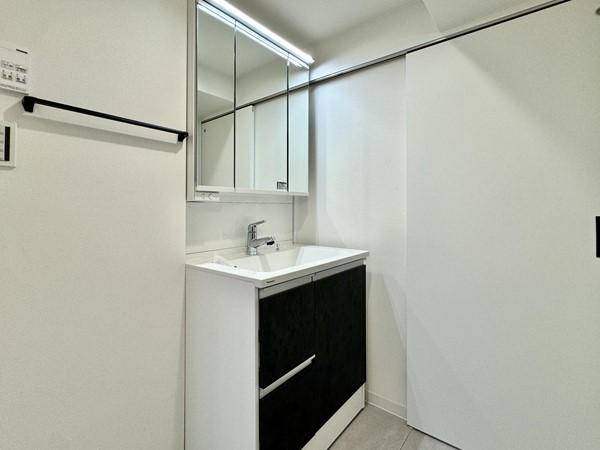 物件探しの際に重要視される方が多いサニタリールームをチェック◎洗面化粧台と洗濯機置き場が同じ空間にあるため、洗濯物の予備洗いがしやすいですね。洗面化粧台はミラーキャビネット仕様になっていて、整理整頓もバッチリ♡