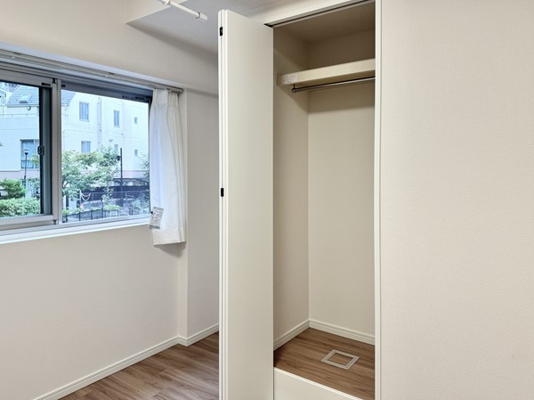 廊下から出入り可能な、ベッドルームは約5.4帖です。窓があるので圧迫感はありませんよ♪トールサイズのクローゼットが備わっていて、丈の長い洋服もシワにすることなくしまえるのが嬉しいです♫