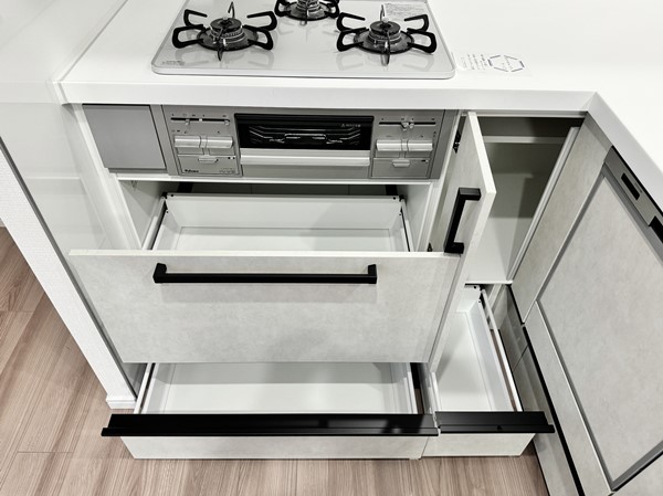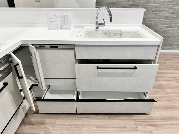 キッチンは新規交換されました♡L字型で、使い勝手抜群です✦リビングダイニングにいる家族や友人と会話を楽しみながら作業ができます。清潔感のある見た目に、浄水器&食洗機付きと機能面が揃い、満足していただけますよ♫